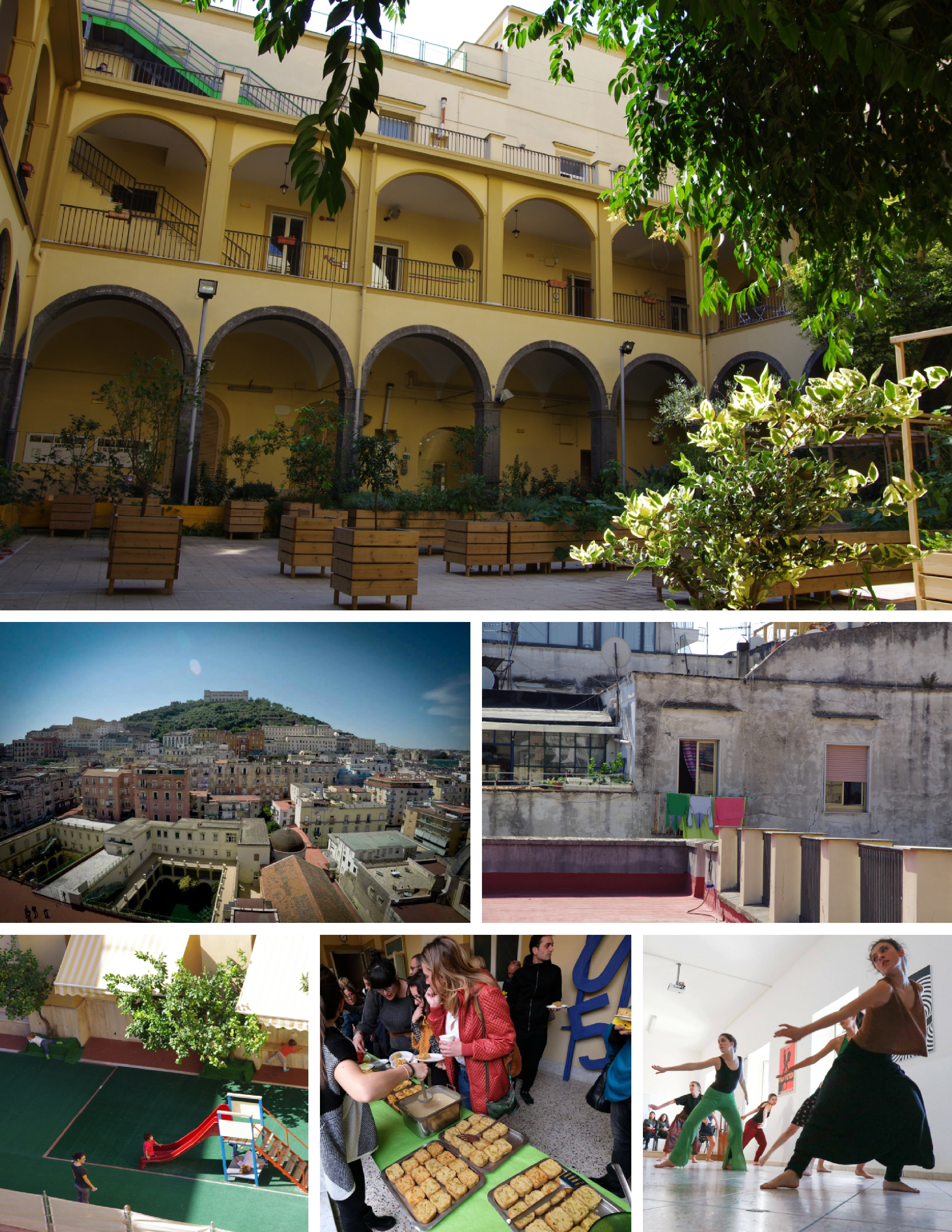 Ce monastère est situé dans les Quartieri Spagnoli [« Spanish Quarters »], un district difficile de Naples : quartier très populaire, haut taux de criminalité, taux de chômage le plus élevé de la ville, taux d’alphabétisation faible, aucun espace vert et de détente, etc.